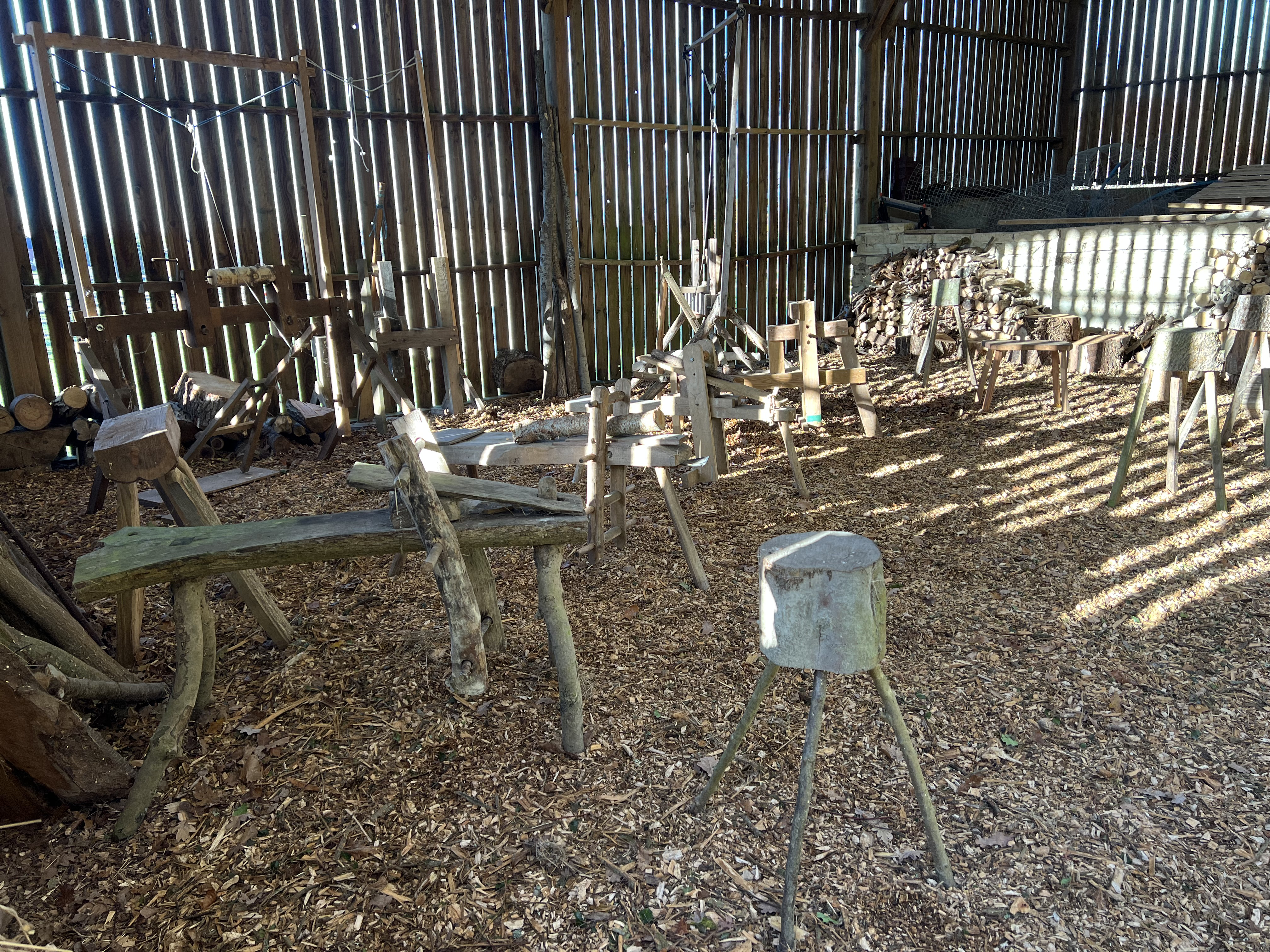 We have some green wood bodging lathes, shaving horses and benches. Typical projects might range from simple spoons and light pulls, through to stools or chairs and anything in-between.