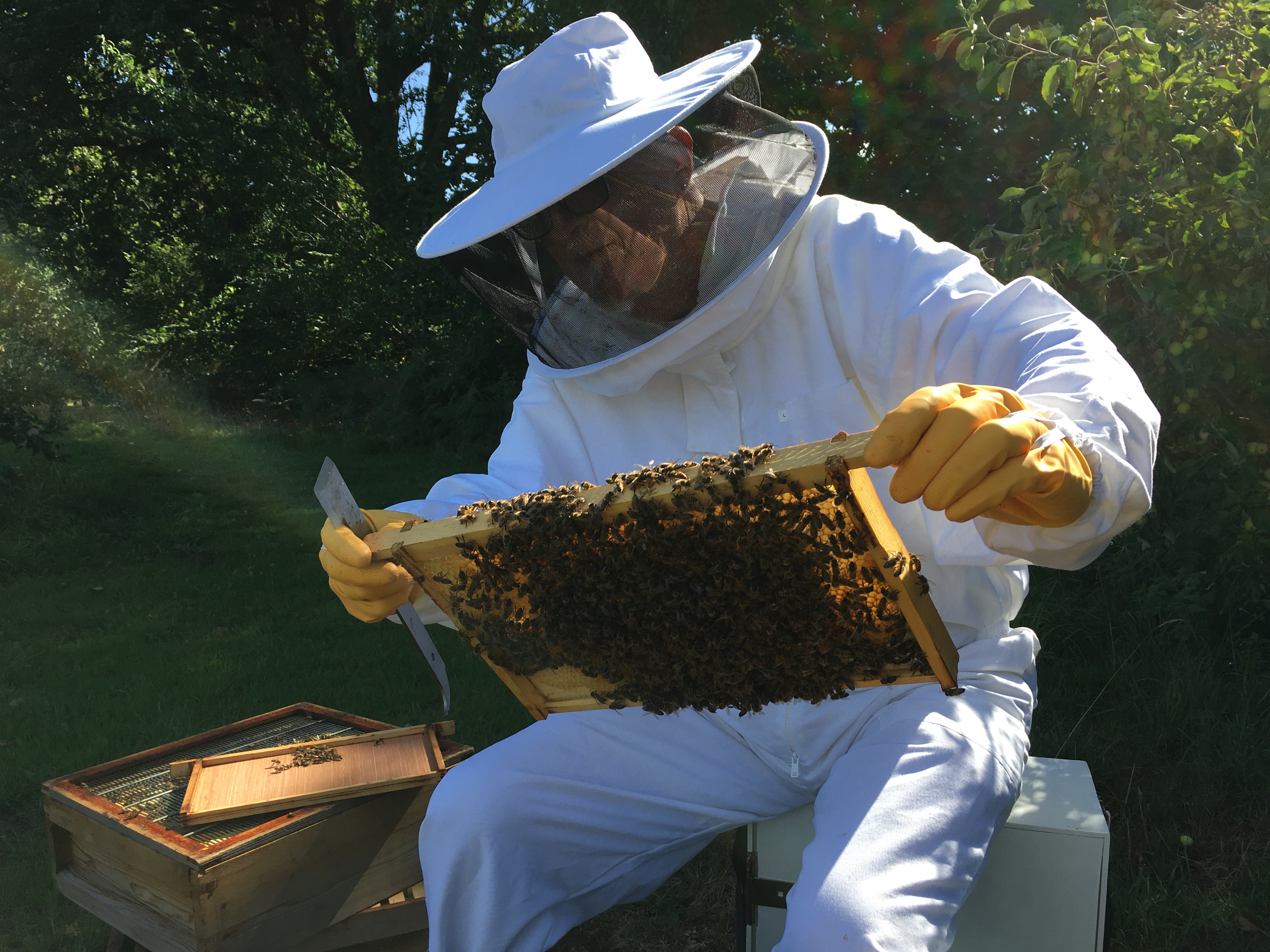 For anyone wanting to find a route to beekeeping, we highly recommend becoming a member of a local Beekeeping Association. Between us, we have trained with both Farnham and Guildford Beekeeping Associations and have found them to be a great source of knowledge – very helpful people with lots of useful contacts and keeping us up to date with the constantly changing issues affecting beekeeping. There is a lot involved in beekeeping and we are constantly learning.